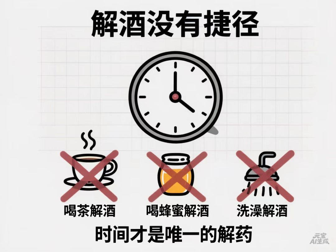 一句话总结: 解酒没有捷径,时间才是唯一的解药。