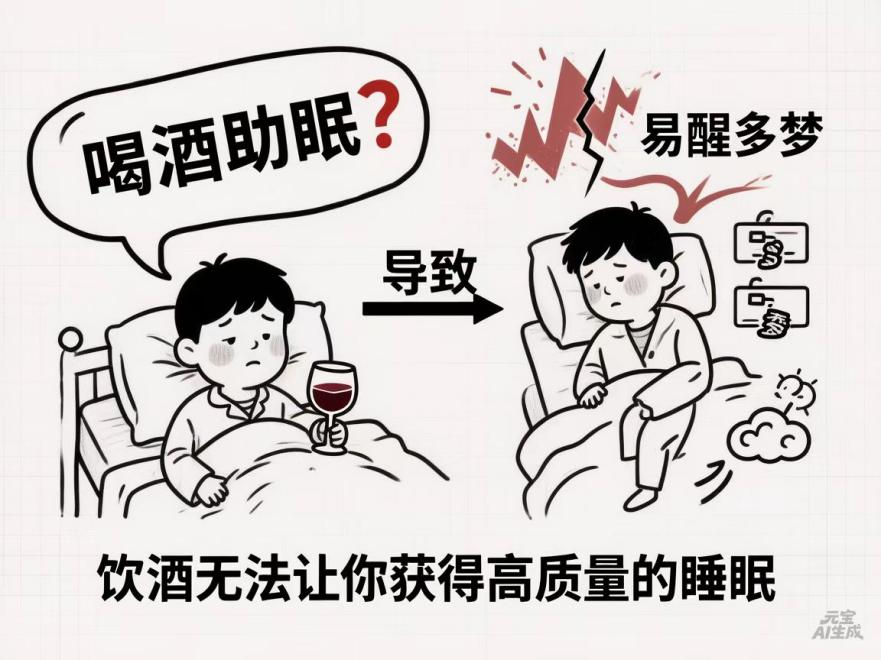 误区六:“喝酒助眠”