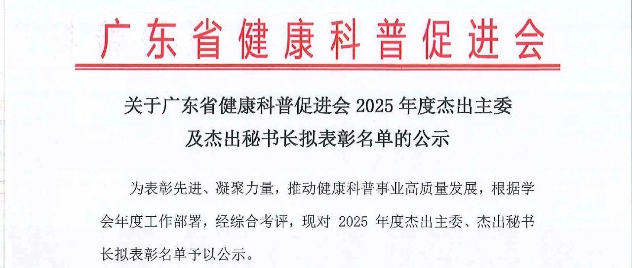 公示 | 广东省健康科普促进会2025年度杰出主委及杰出秘书长拟表彰名单