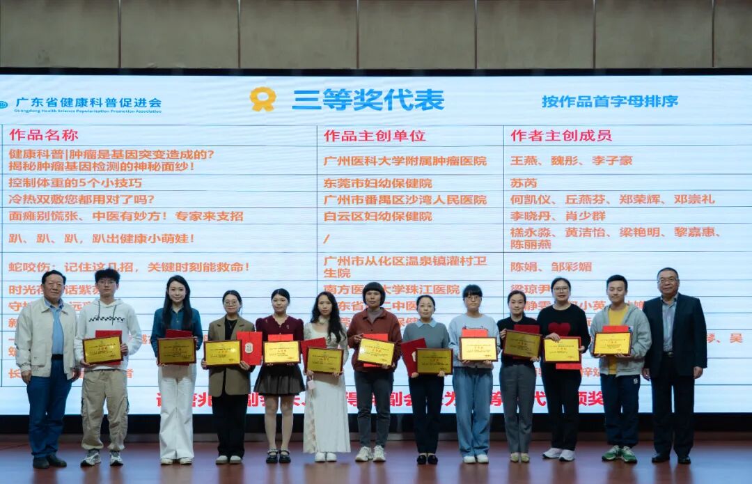 为深入贯彻落实习近平总书记关于“把保障人民健康放在优先发展的战略位置”的重要指示精神,积极响应党的二十届四中全会关于“实施健康优先发展战略,健全健康促进政策制度体系”的规划部署,并切实落实新修订的《中华人民共和国科学技术普及法》(2024年12月修订)中关于“建立专业化科普工作人员队伍”等相关要求,广东省健康科普促进会于12月6日下午在广州举办2025年工作总结大会暨广东省第二届健康科普作品技能技巧大赛颁奖典礼。
