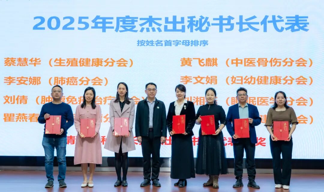 会长余新炳和秘书长张意分别颁发了“2025年度杰出主委”与“2025年度杰出秘书长”奖项,表彰在年度科普工作中表现突出的分会负责人。
