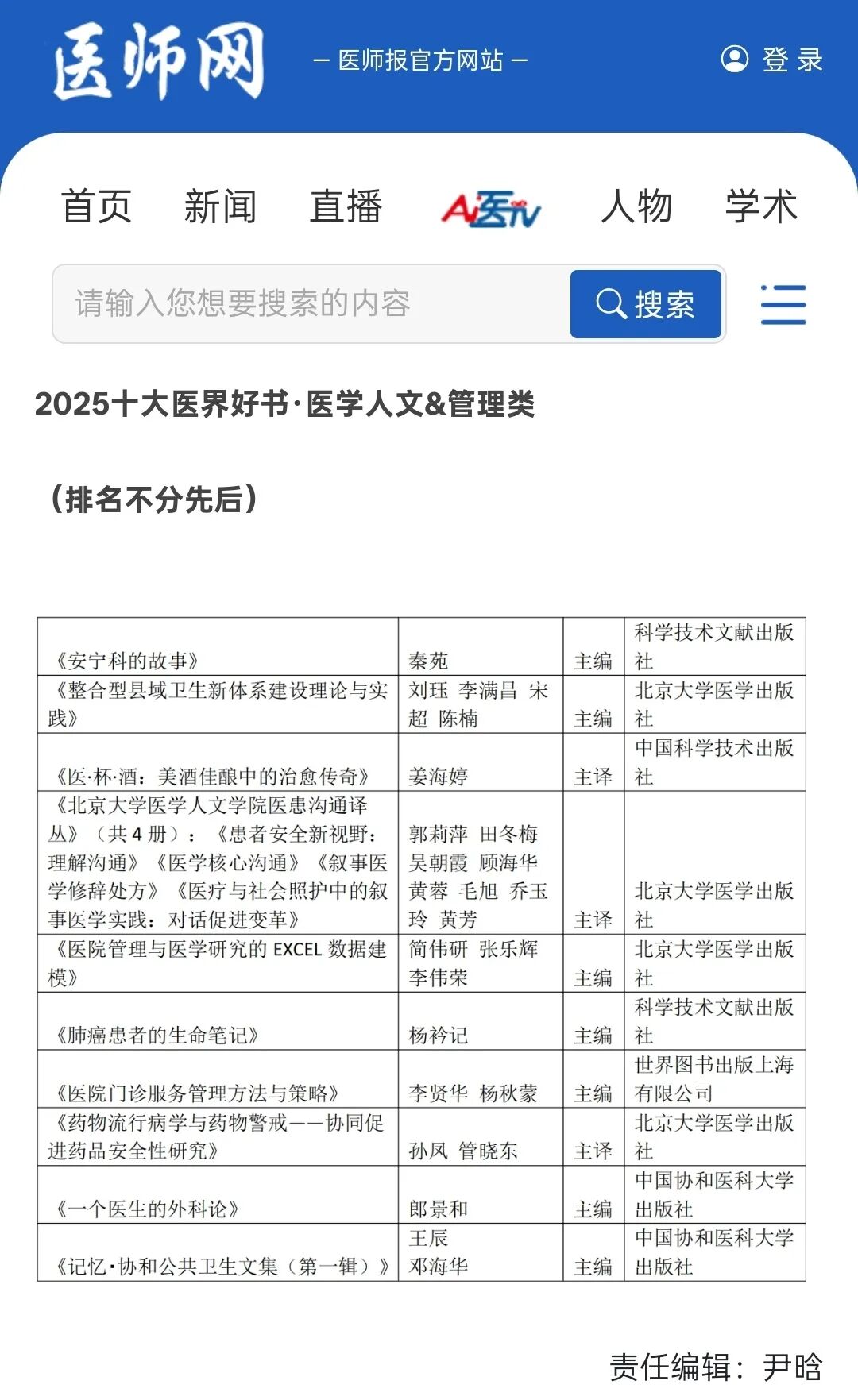 图2:2025十大医界好书公布新闻,来自网络