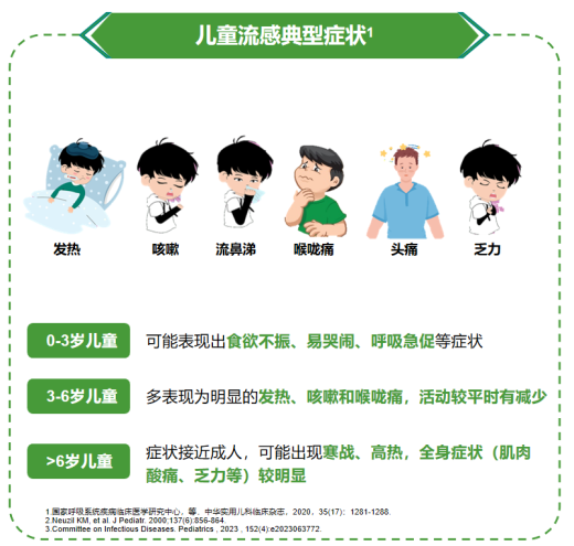 它与普通感冒不同,具有传染性强、发病急、症状重的特点,且更容易引起并发症。流感病毒有很多亚型,分为甲、乙、丙、丁型,儿童流感主要由甲型与乙型流感病毒引起。其中包括甲型H1N1、甲型H3N2(近期主要流行病毒株)和乙型(Yamagata和Victoria)等。