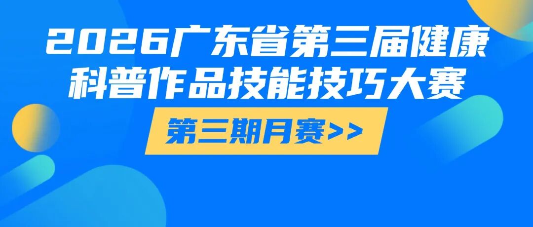 备注:所有参赛作品创作时间需在2025年6月1日及以后,已参加过广东省第一、二届健康科普作品技能技巧大赛的作品及2026广东省第三届健康科普作品技能技巧大赛往期月赛的作品不得重复投稿参赛。图文漫画类作品上传图片及PDF格式文件,视频类作品上传MP4或MOV格式文件,文件大小不超过500MB。可以使用AI工具辅助创作参赛作品,但使用AI工具辅助创作的内容需标注由AI生成。建议作者保留参赛作品源文件及相关工程素材,以备不时之需。